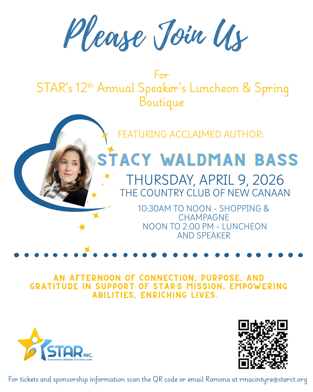 Country Club of New Canaan 95 Country Club Road, New Canaan, CT, United StatesJoin us at the upcoming STAR Luncheon featuring acclaimed photographer and visual storyteller Stacy Waldman Bass.
